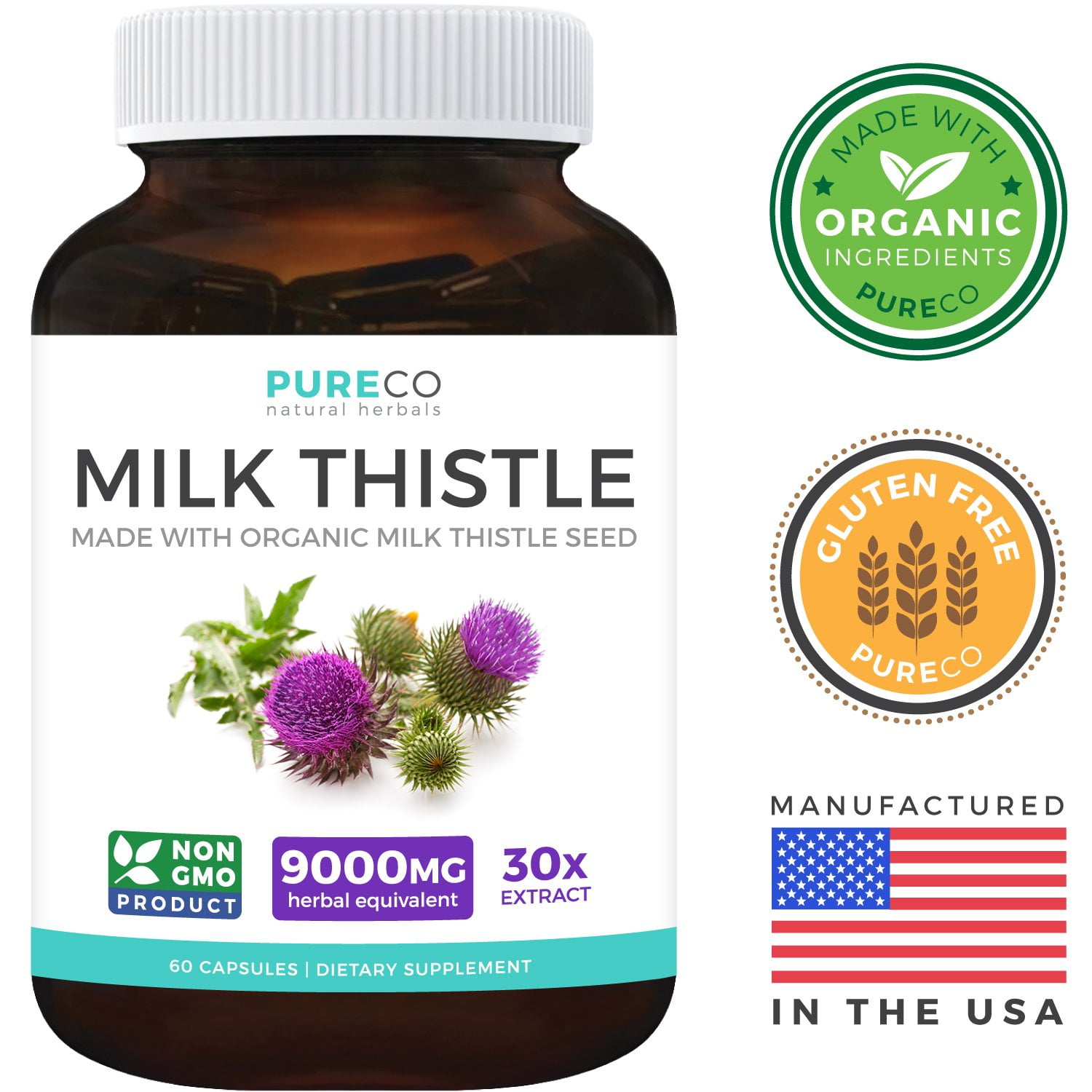 Pure Co Organic Milk Thistle Extract Vegan - Super-concentrated 301 Extract For 9000mg Of Milk Thistle Herb Power - Silyamin Marianum - Supports Cleanse Detox - 60 Capsules - Walmartcom